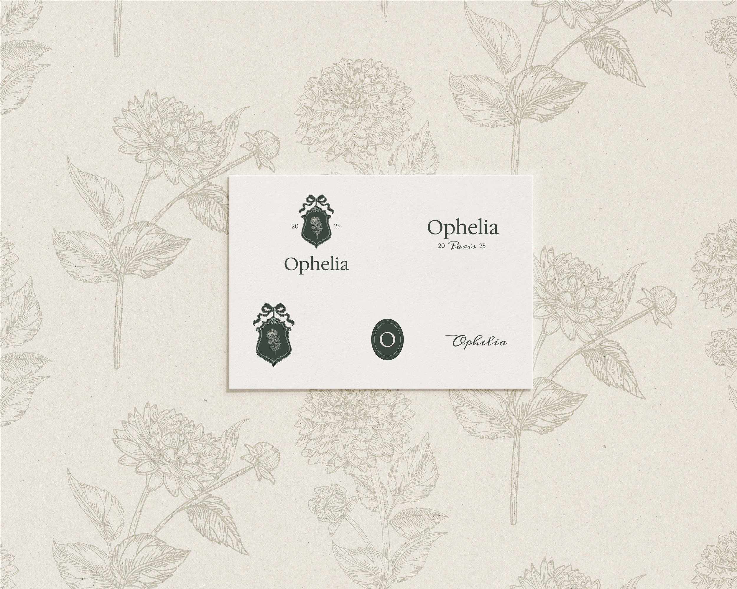 Ophelia est une identité visuelle pré-designée, pensée pour les marques et créateurs qui souhaitent incarner une esthétique noble, élégante et intemporelle.